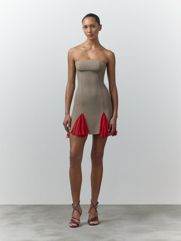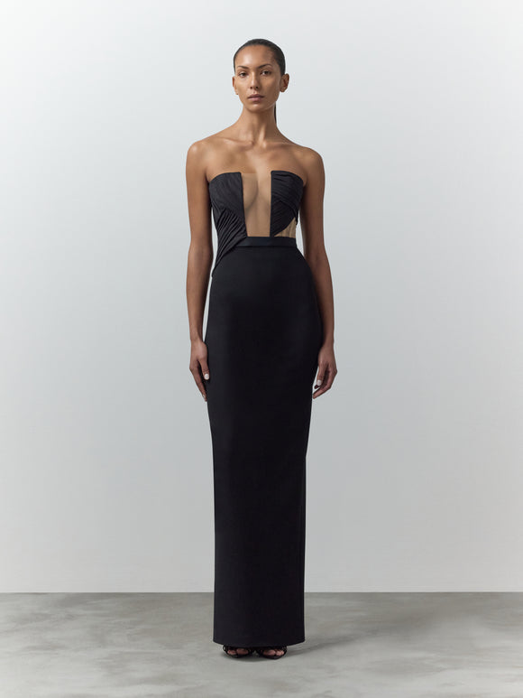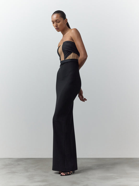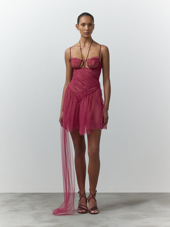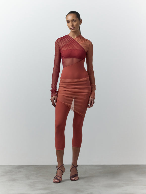 CORSETTED MIDI DRESS WITH RAGLAN SLEEVE