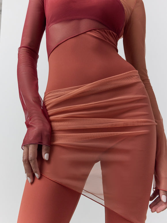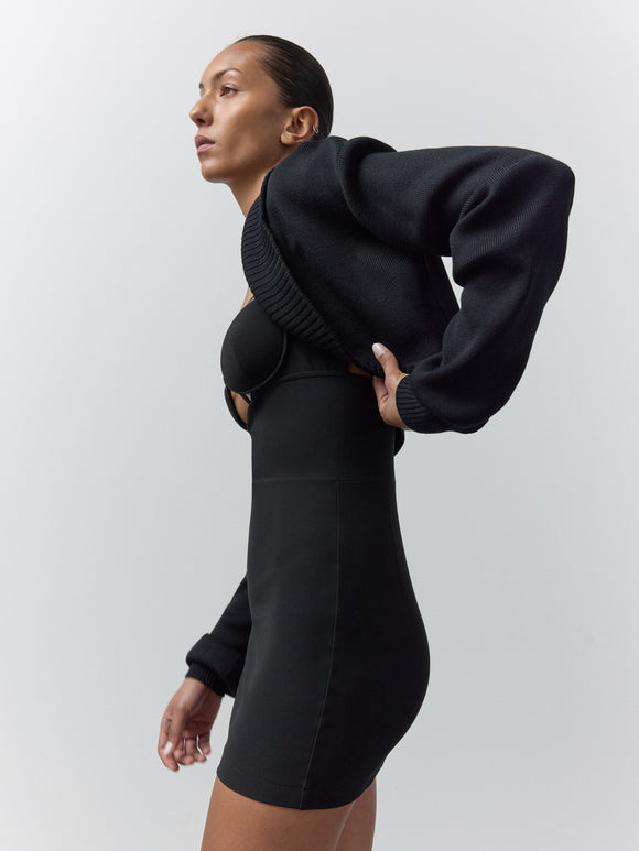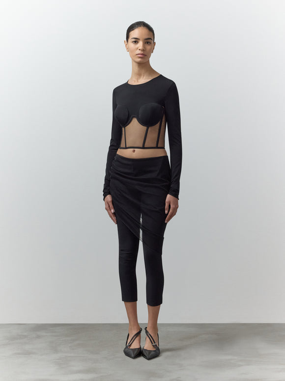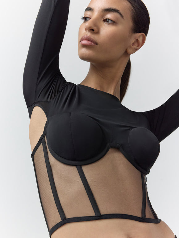 BUSTIER CREW NECK LONG SLEEVE TOP